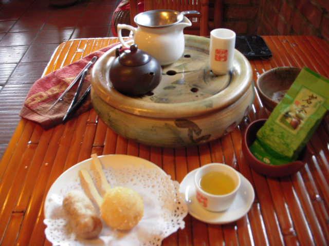 「清香烏龍」を飲みました。お茶請けは揚げ団子的なもの
