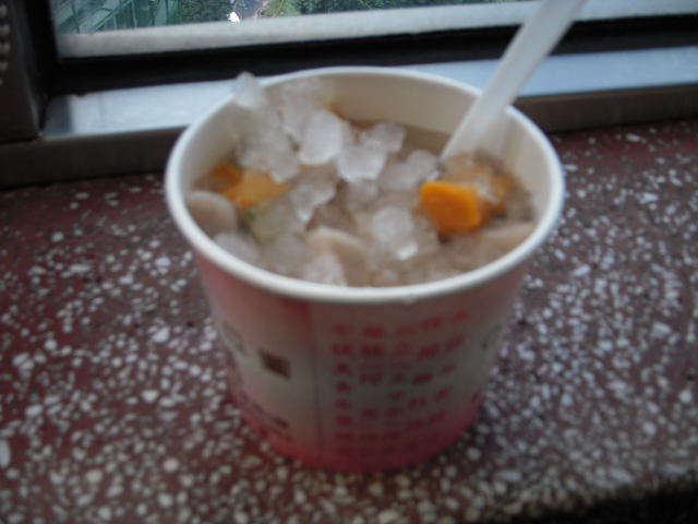 どんどん通りを進んだところで、名物「芋圓」(要はタロイモ団子)を